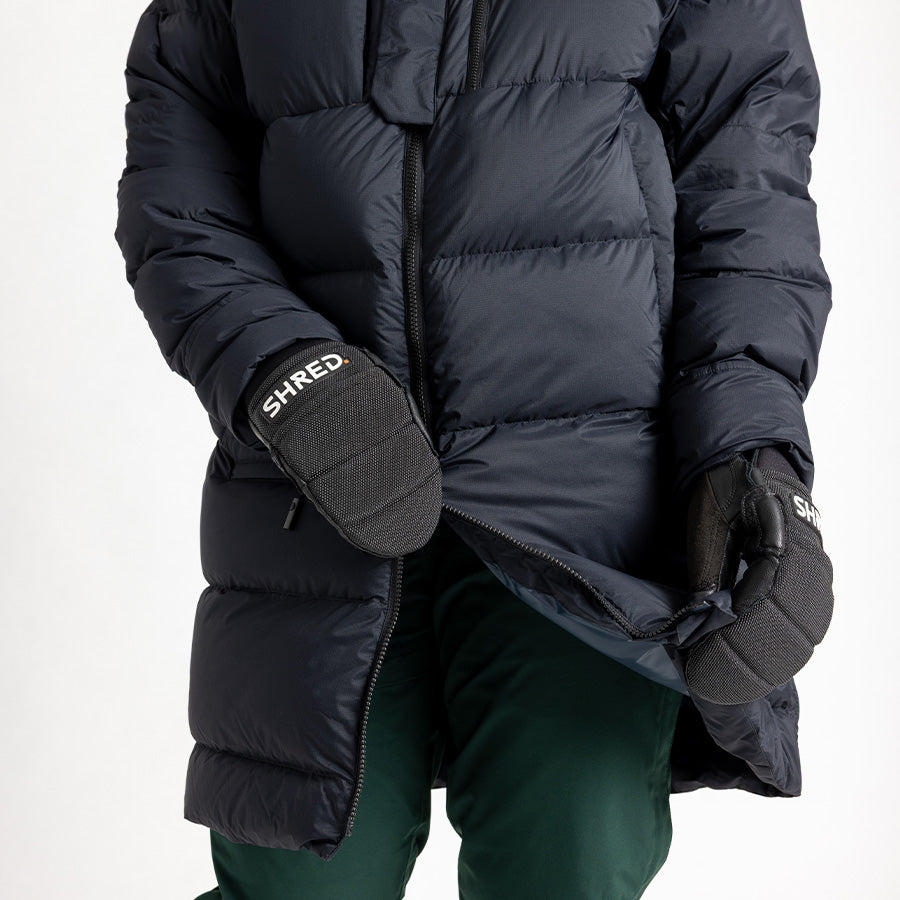 Long coats usually mean busted zippers and bulky restriction. The Pano Plus, refined with athlete feedback, solves that with upgraded two-way zippers and glove-friendly pulls, plus a magnetic draft flap that locks in warmth but opens when you sit for freedom of movement. No jams, no restrictions.