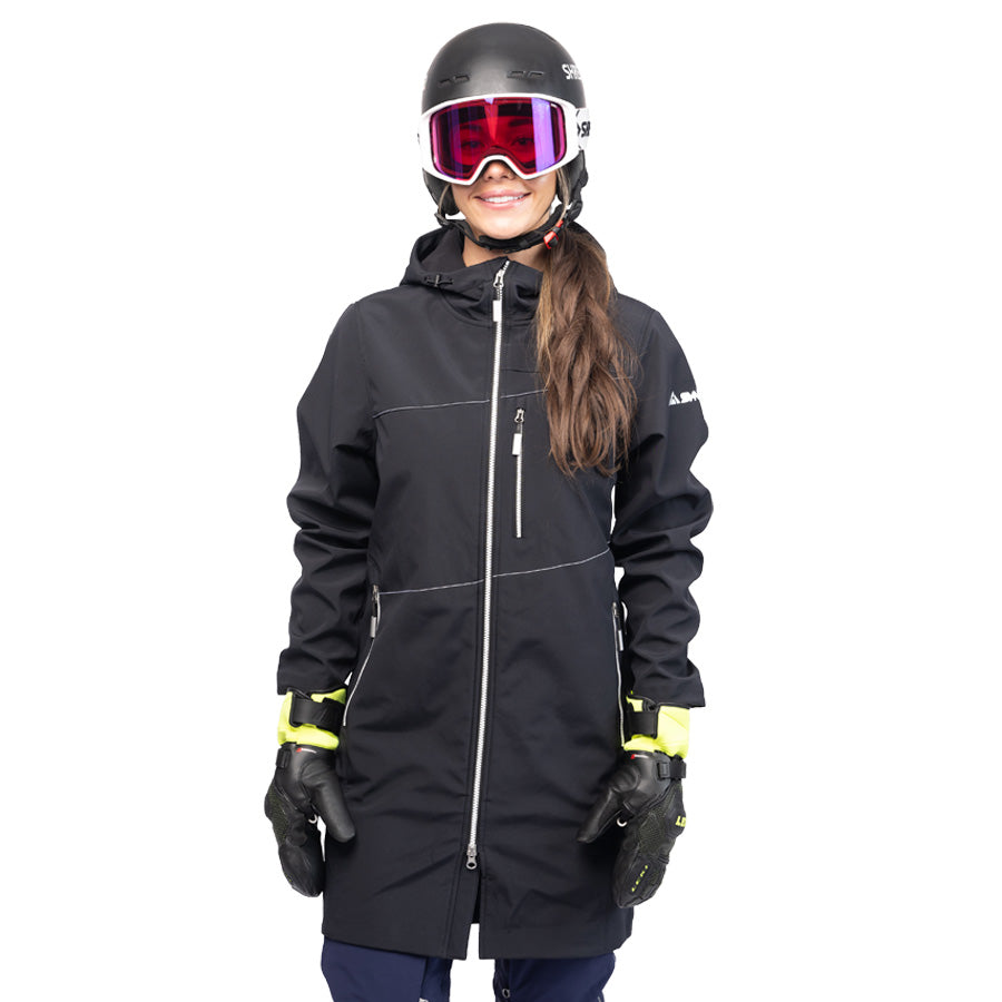 The Women's Start House Jacket is a 3/4 length softshell built with durable fabric to protect from abrasion on and off the hill from your head down to your knees - now with a women's specific fit! This jacket can withstand everyday wear like a champ. You’ll be shielded from wind and the elements when standing on the sideline filming athletes or gate-keeping, but it’s non-insulated so you won’t sweat buckets when setting a course or pulling b-net.